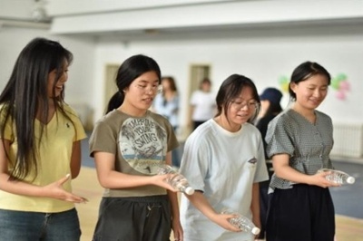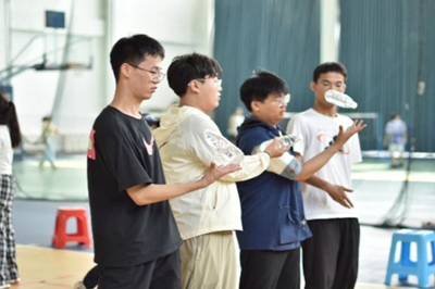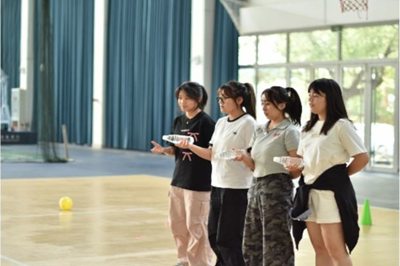 在“瓶盖运输计”环节,选手们在起点用脚面小心翼翼托起瓶盖,眼神专注,步伐稳健又急切,努力保持平衡,防止瓶盖掉落。在“抛瓶换位”游戏环节,成员们紧盯瓶子,默契抛接。在“禁止掉链子”游戏环节,同学们马不停蹄进行着接力游戏,比速度、拼协作。现场气氛紧张热烈,加油声不断,比赛在同学们的欢呼声中推向高潮。